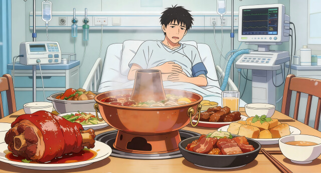 湖南日报12月4日讯(全媒体记者 周顺 通讯员 聂莉 朱文青)随着冬季到来,火锅、进补炖汤等重油高脂食物成了餐桌“常客”。但美味背后暗藏风险——长沙市中心医院(南华大学附属长沙中心医院)近期连续收治7例急性胰腺炎患者,其中22岁小伙覃超(化名)仅因一顿红烧肘子,就被确诊为“急性重症胰腺炎”,紧急住进急诊重症监护室。
