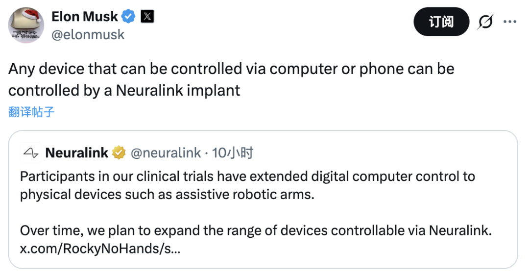 马斯克还表示,理论上通过电脑或手机,Neuralink将能够间接控制一切。