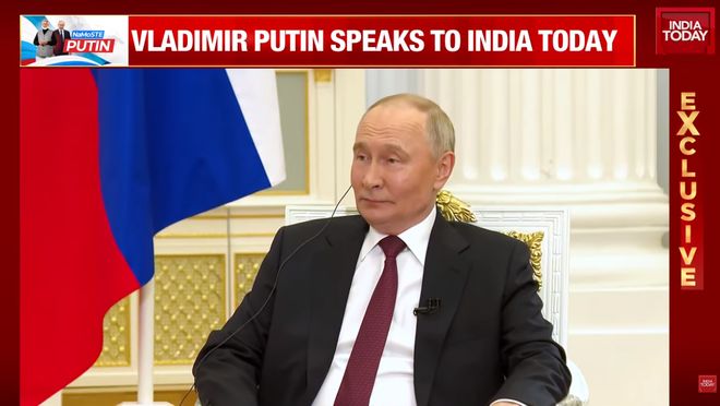 普京接受《今日印度》专访 图源:印媒视频截图